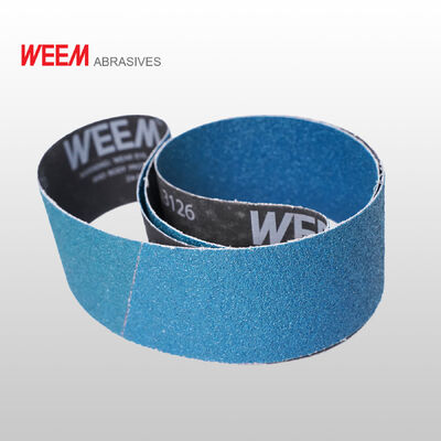 WEEM 3126 antistatische, selbstschärfende Zirkonia-Aluminiumverstärkung, langlebige Y-Gewicht wasserdichte Polyesterunterlage machen zu einem breiten Schleifgurt für breite Schleifmaschine.Es bietet eine bessere Schleifen dann Siliziumkarbid und Aluminium-Oxid Schleifgewinn, und dauert länger.